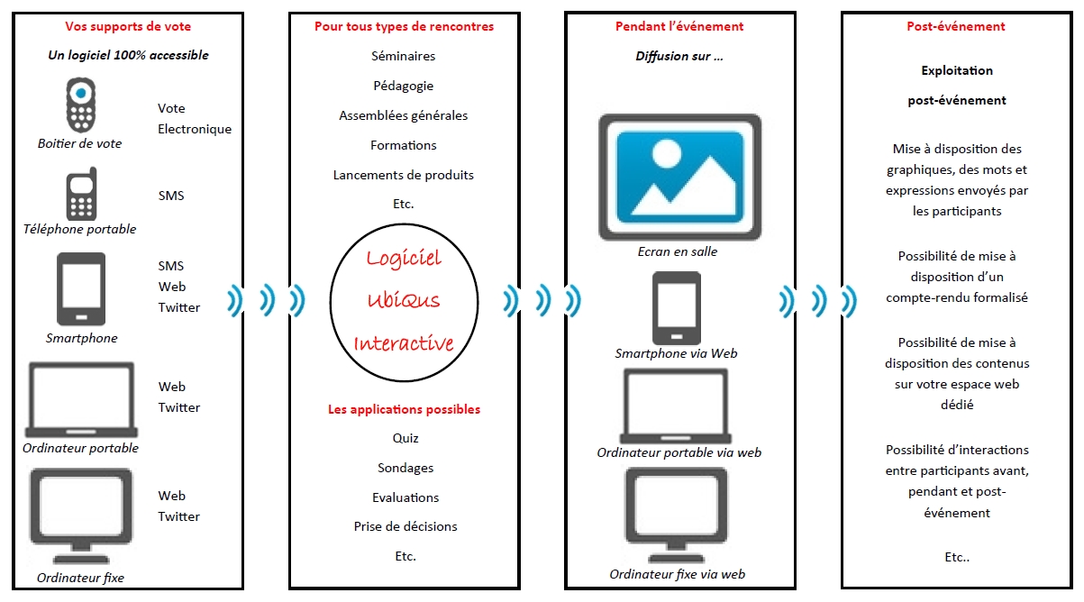 Ubiqus vous aide à penser le déroulé de votre rencontre professionnelle (formation, colloque, atelier…) en y intégrant des séquences de vote électronique.